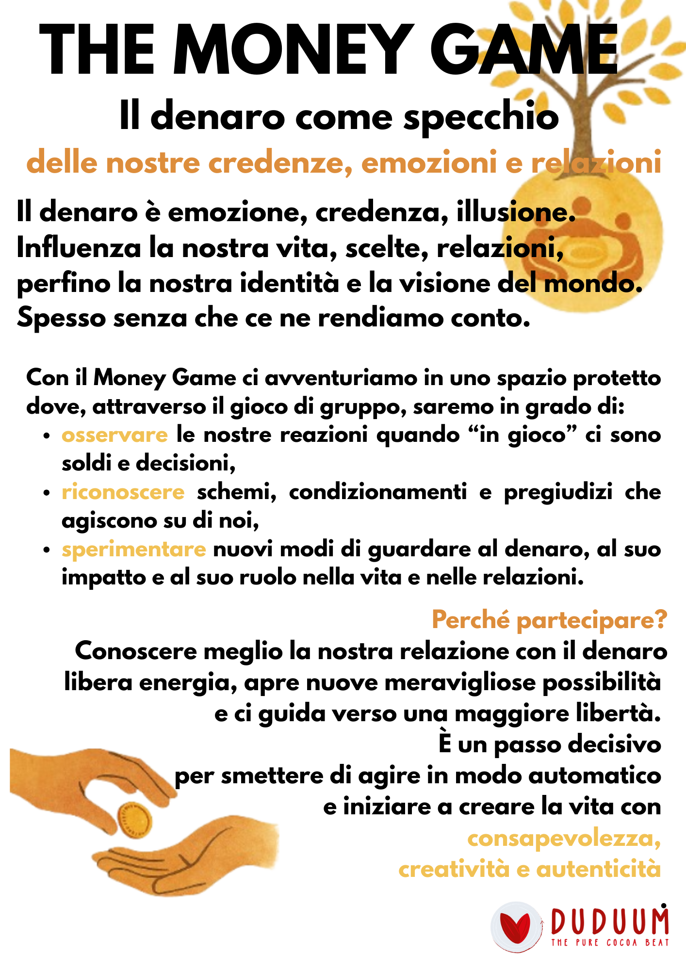 Questo laboratorio ci sta molto a cuore perché il tema del denaro è a nostro avviso centrale per la co-creazione di un mondo di pace. L'esperienza immersiva e profonda ha entusiasmato il gruppo e ci ha emozionati. Sarà un fil rouge del nostro lavoro volto a promuovere consapevolezza.